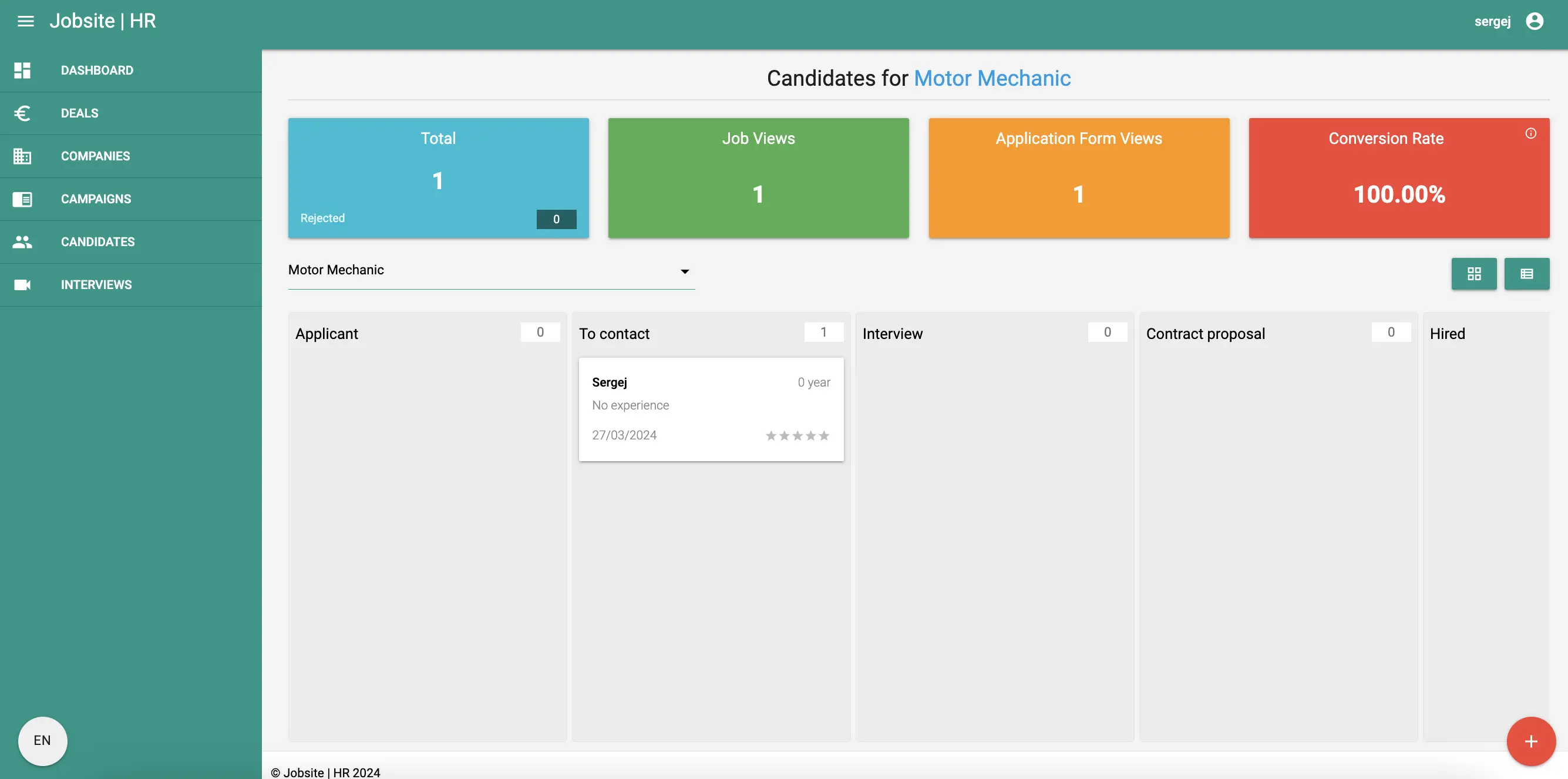 - The number of applications depends on the type of vacancy and the form's threshold. The longer the form, the less likely a candidate will complete it, especially for in-demand professions. Our ATS, on average, converts 10% of visitors into applicants. Our application procedure is meticulously crafted and dynamic, allowing you to customize the form for each vacancy as needed. You'll benefit from an influx from sites that receive thousands of visitors and direct targeting with matching. See statistics.